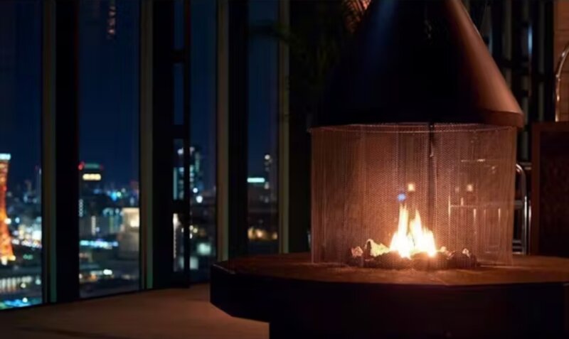 大きな暖炉は夜になると夜景とあいまって雰囲気抜群👍