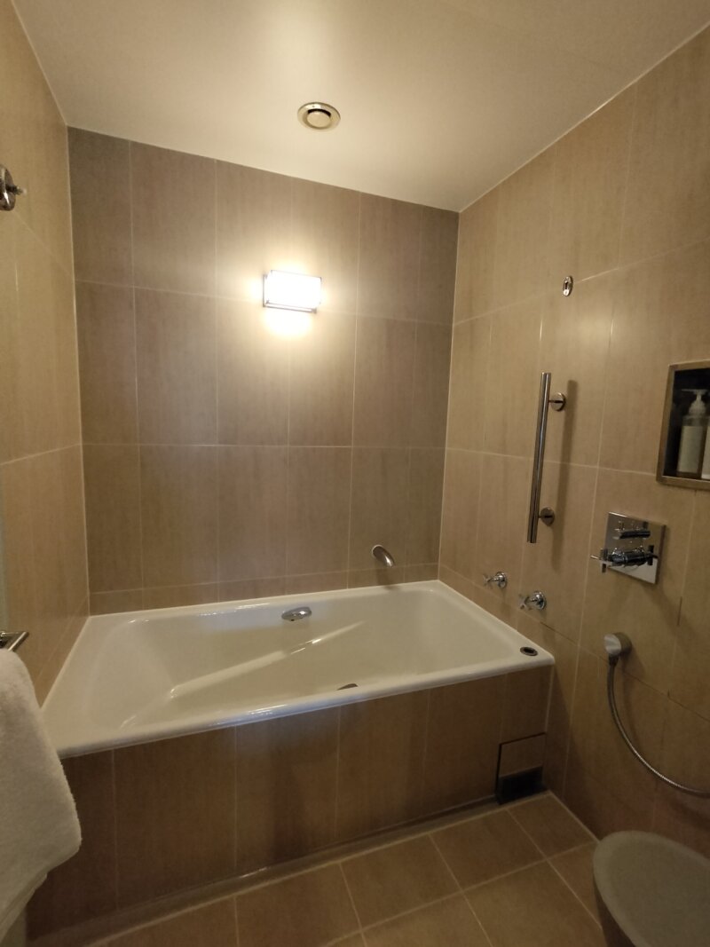 大きなバスタブで肩までたっぷりのお湯につかってのんびり寛げるバスルームでした✨