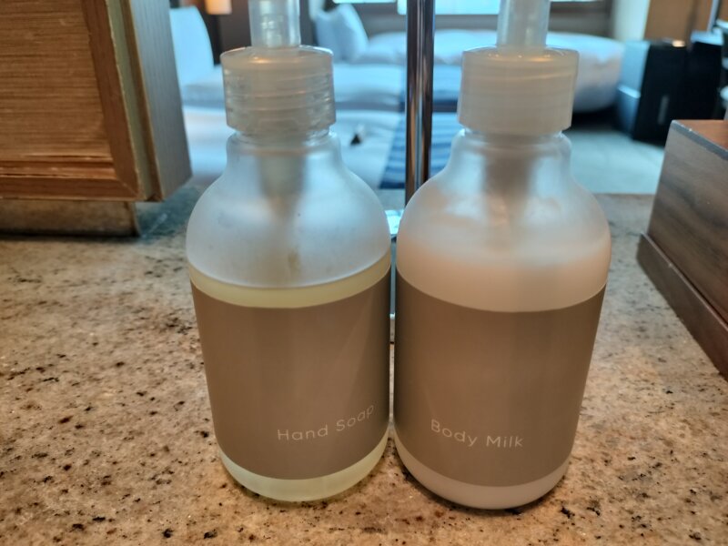 ハンドソープだけじゃなくボディミルクまであるのが、ちょっと良いホテルの証😁