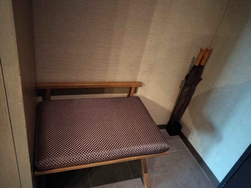 入口すぐには、ブーツの脱ぎ履きにも便利なベンチがあります