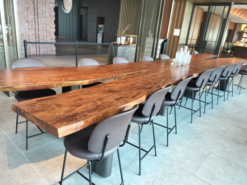 カウンター席の大きな一枚板が目を引きます😳✨