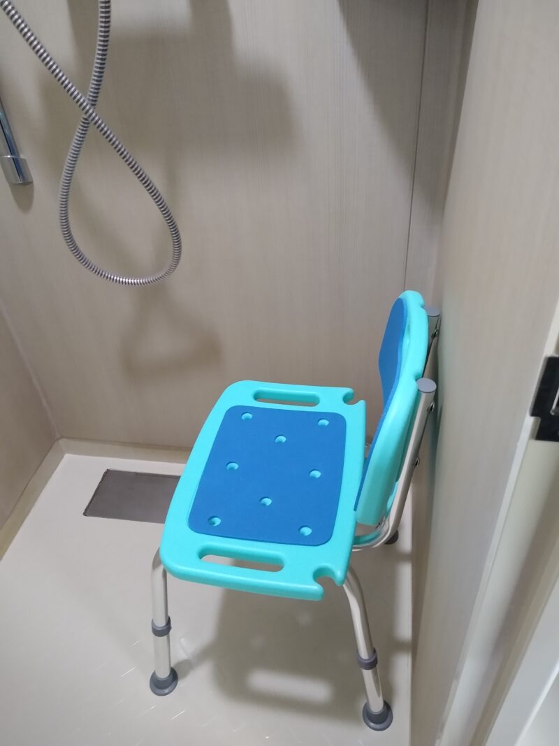 シャワーブースにはリクエストしておいたバスチェアを置いてくれていました