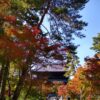 紅葉が始まっていました。茶室の屋根と紅葉がとても美しい…鯉も優雅に泳いでいました