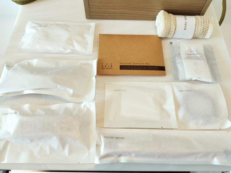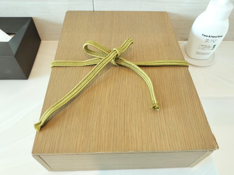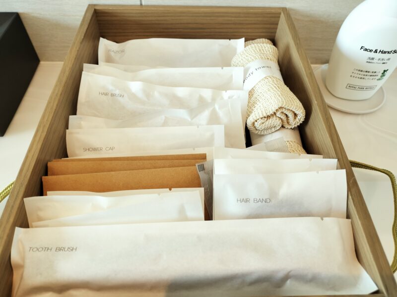タオル類がたくさんと、木箱に入ったアメニティ☺️✨