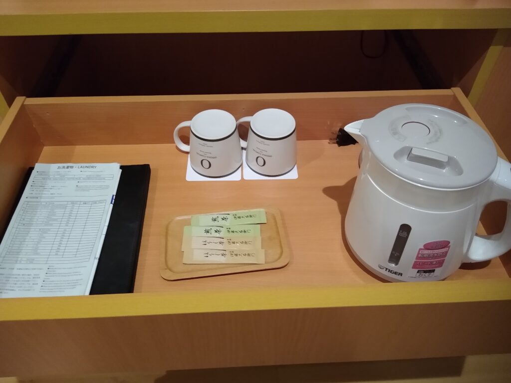 一階のラウンジで珈琲、紅茶、ジュースなどが飲み放題なので、部屋には必要最低限
