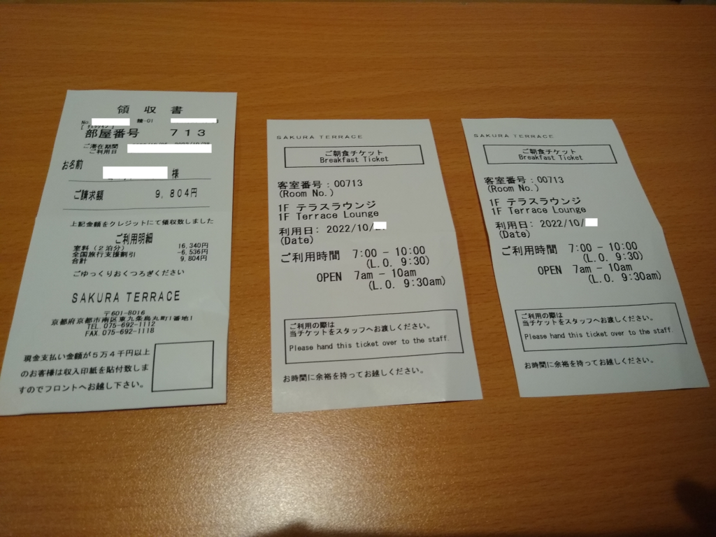 今回は朝食付きを選んだので、1人一部屋で一泊すると8,170円!