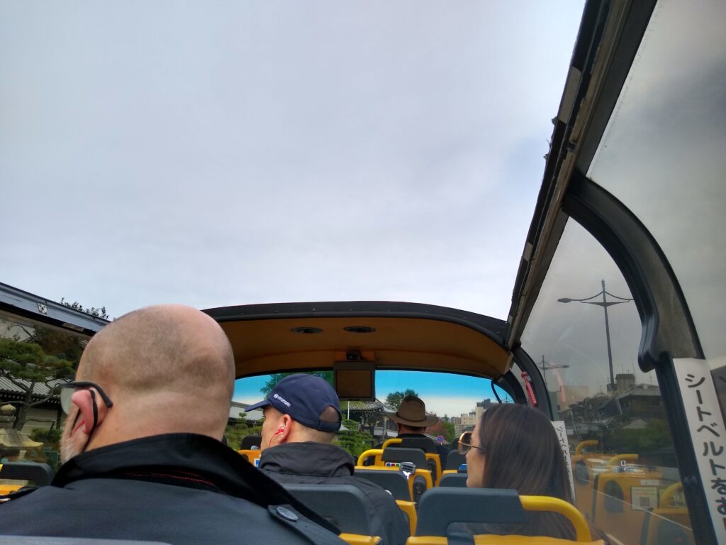 - ①バスから降りず、一時間で市内(二条城や八坂神社など比較的京都駅から近いところ)をぐるっと回る2,000円のものと