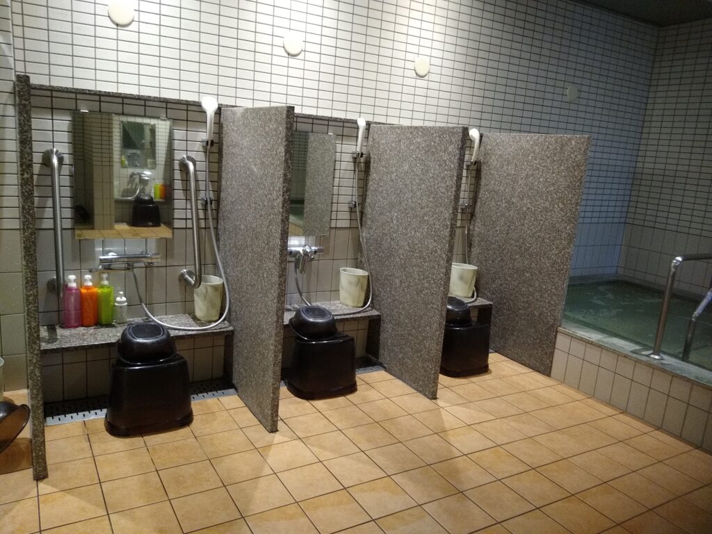 座って使う洗い場と