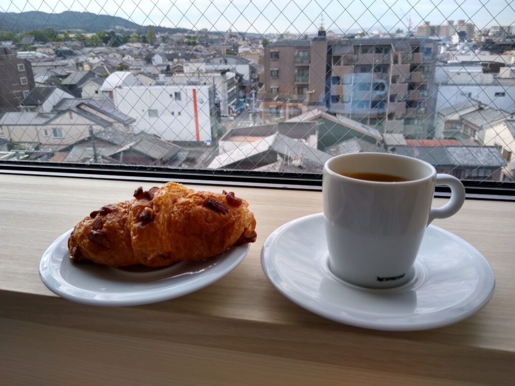 遠くの東山を眺めながら頂くのは「別格」というお店のクロワッサン 確かに別格だった…