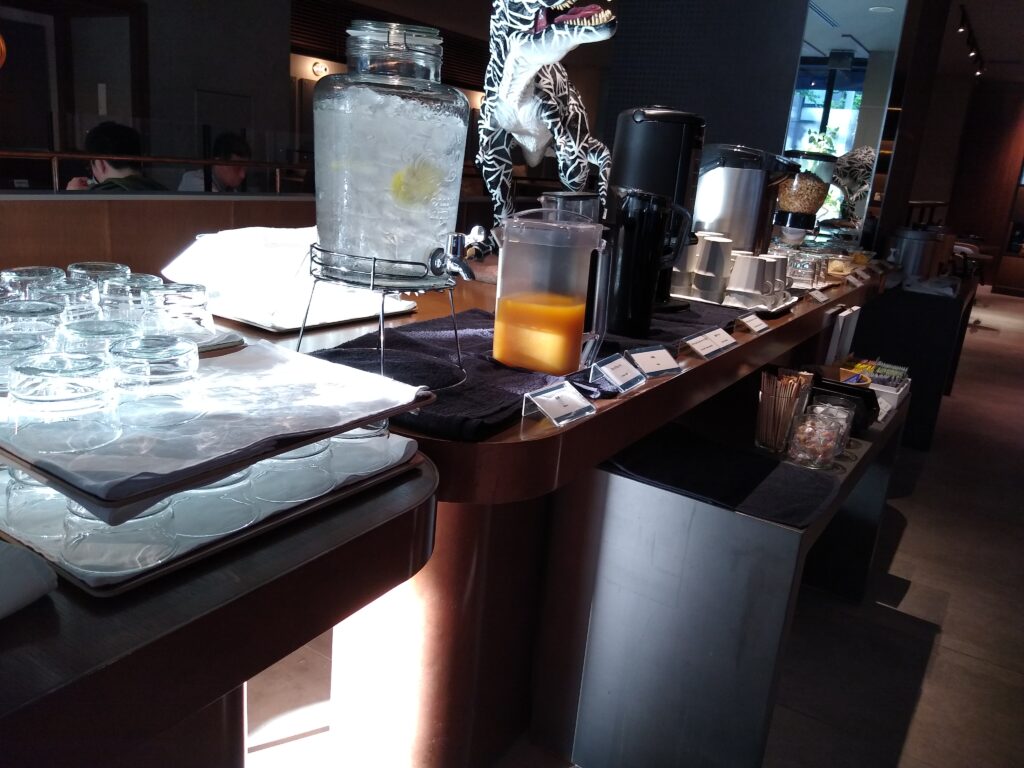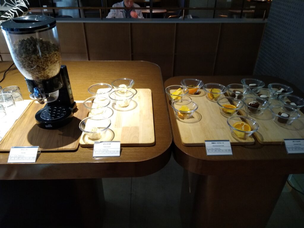 ドリンクやスープ、シリアルやフルーツ、ケーキなどはビュッフェ台から持ってきます