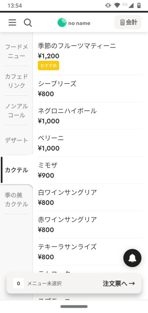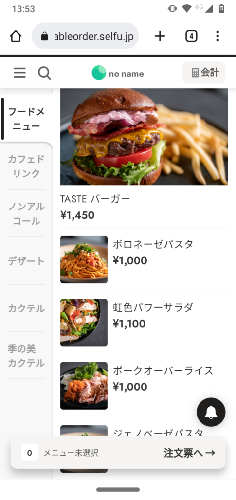 注文は、席にあるバーコードを読み込んで自分のスマホから注文します