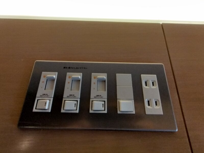 枕元には電源類とスイッチがたくさん