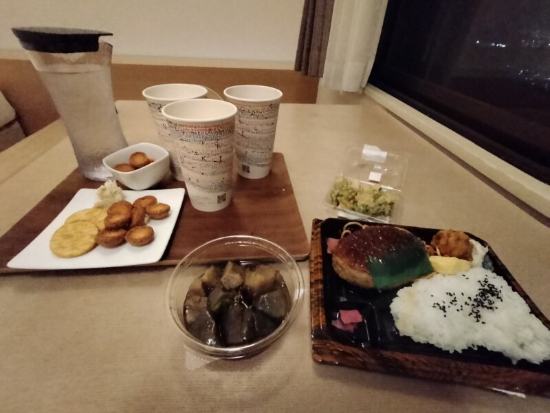 姫路駅で美味しそうなお弁当とお惣菜を買い込んで…