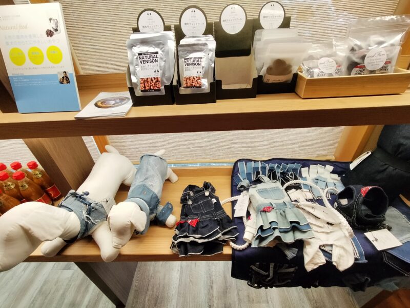 岡山名産のデニム地で作られたペット服も可愛かった〜🐶
