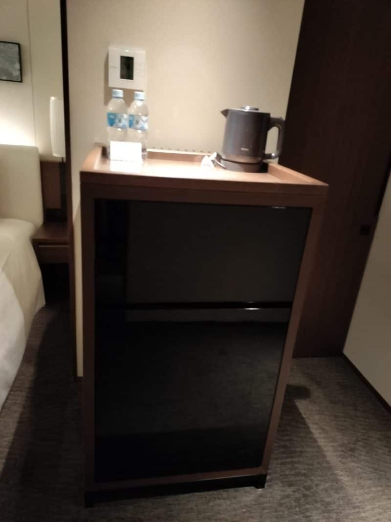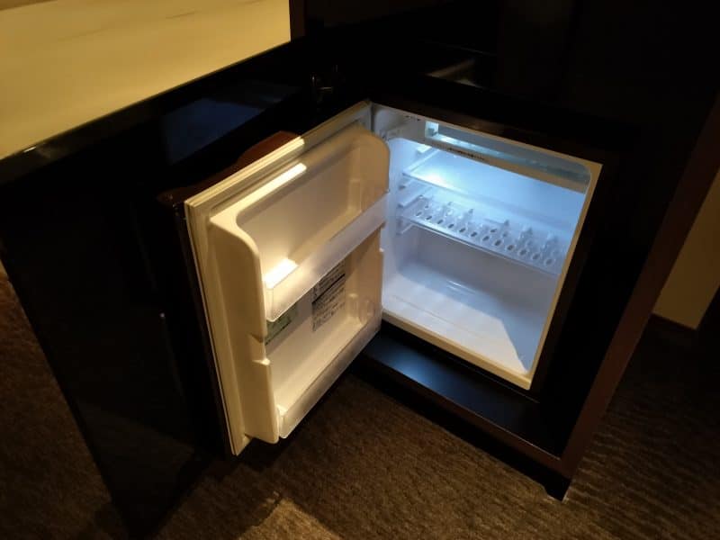 お手洗いとベッドの間には冷蔵庫やミニバー関連があります