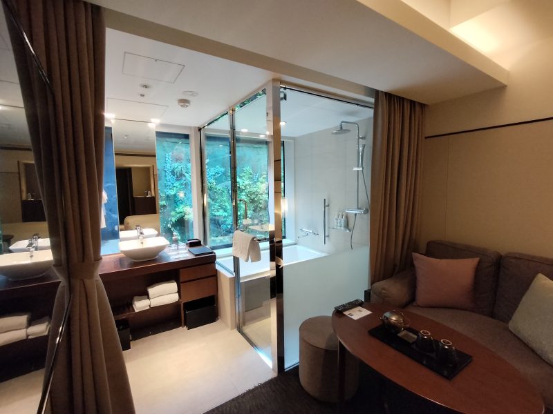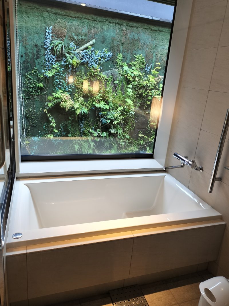 ビューバスと言ってもホテルの外が見えるわけではなく、眺められるのは中庭に面したモスウォール🌿🌿🌿