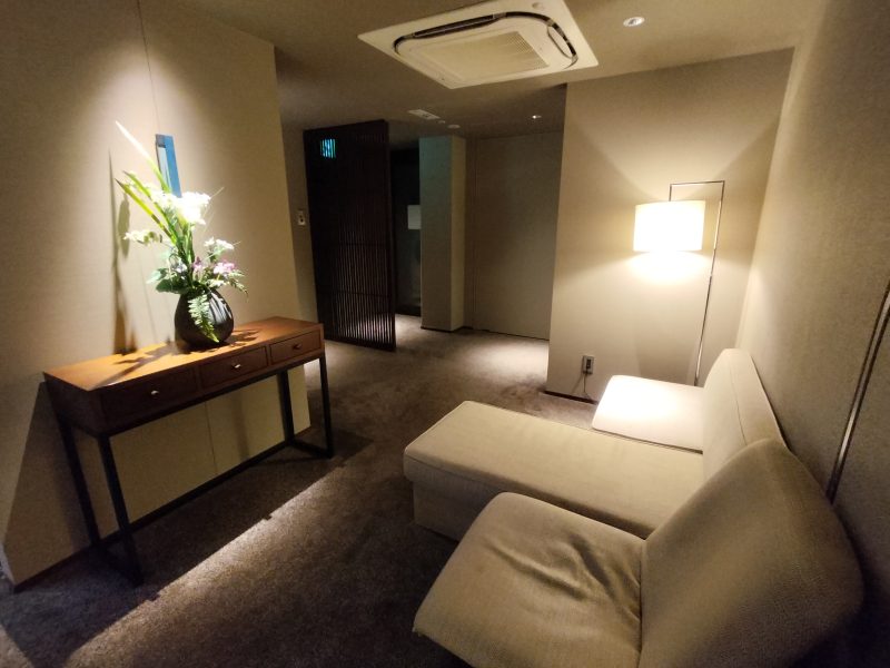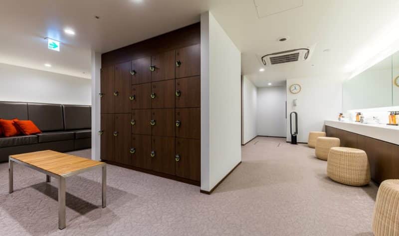 更衣室の中にソファもあったので(↓↓左端の黒いのがソファ)お風呂上がりにゆったりと寛ぐこともできます✨