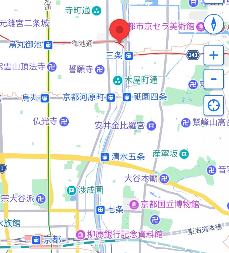 住所〒604-8001 京都府京都市中京区木屋町通三条上る上大阪町509番地