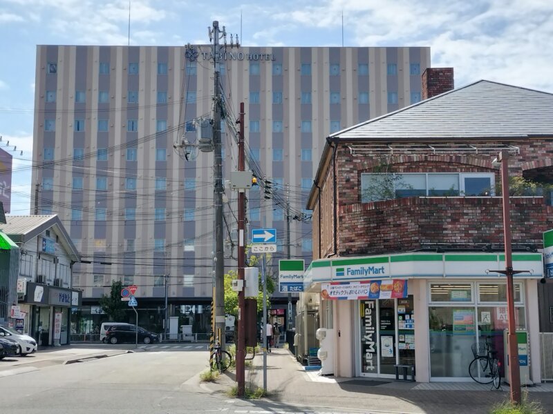 駅を出ると、ファミマ越しにホテルが目の前!