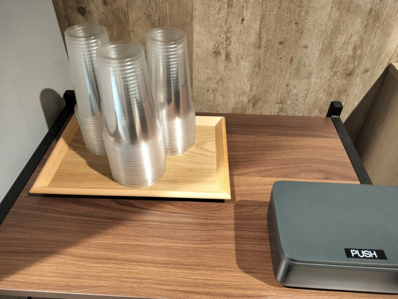 製氷機の横には大きめのプラカップがあるので、お部屋へ持って行くのにも便利✨
