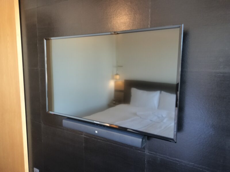 ベッドの足元にはクロムキャスト対応の大きめテレビ