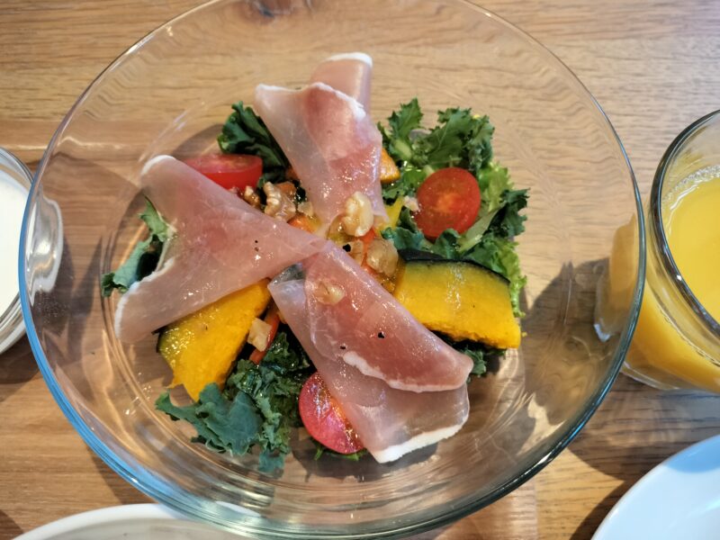 サラダは結構な大きさで生ハムやいろんな種類の野菜がはいっています☺️