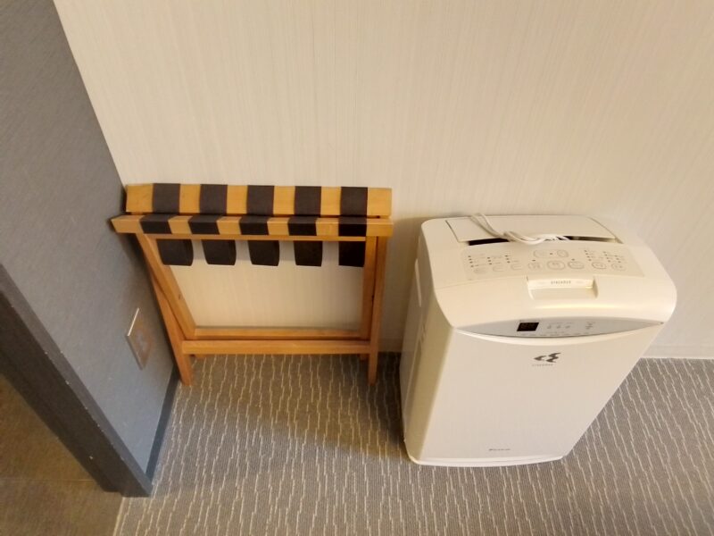 お部屋の入口にひっそりと、空気清浄機とバゲージラックがありました👍