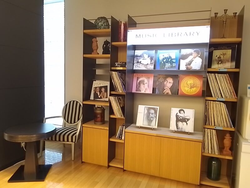 レセプションの横にはお洒落なミュージックライブラリが✨☺️✨
