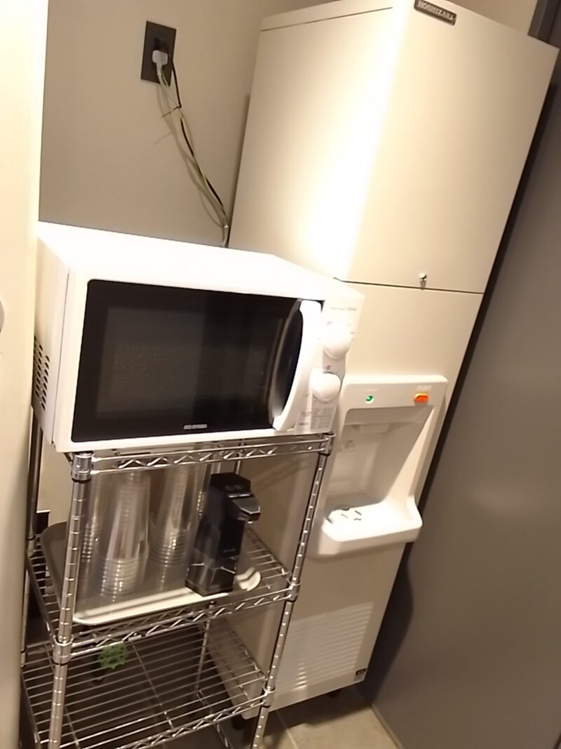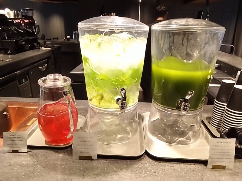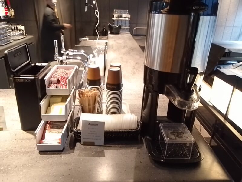 宿泊者限定でドリンク類をフリーで頂けるスペースになっています