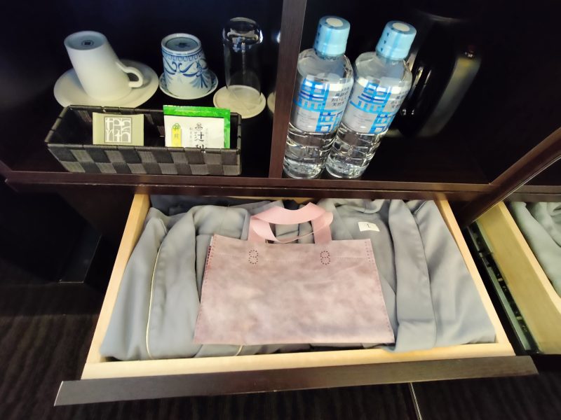 館内着兼パジャマは厚さはあるけど柔らかい生地の作務衣タイプ