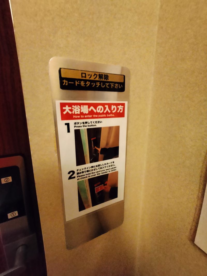 - チェックインの時にもらった赤い大浴場用カードをかざす