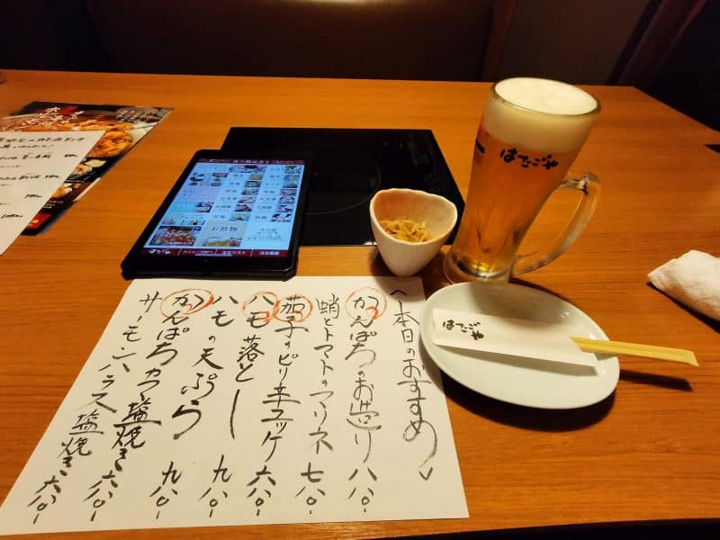 注文はタブレットで、本日のおすすめ料理は手書きの紙に書いてあります✨