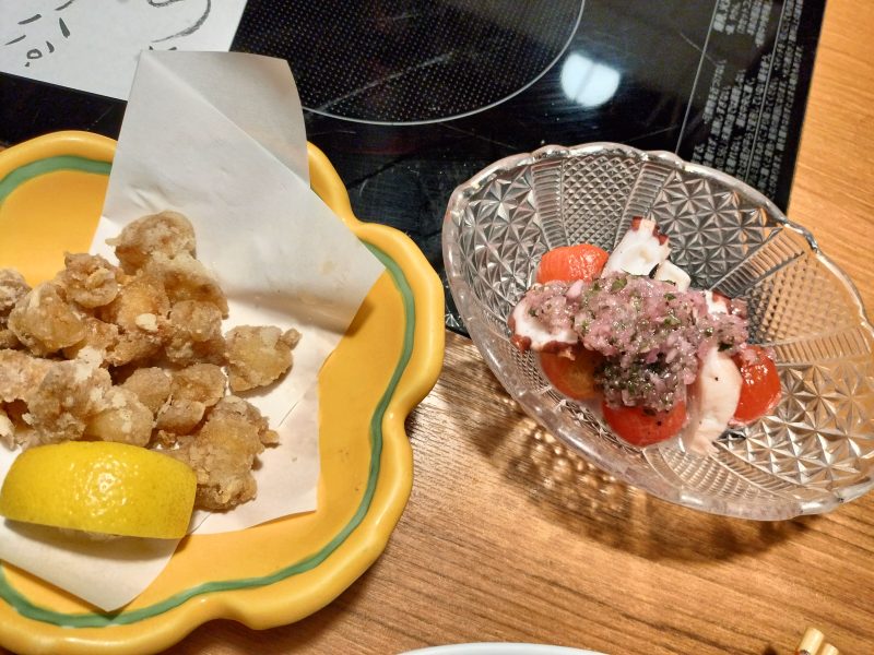 なんこつ唐揚げ500円とタコとトマトの何か 確か400円くらい?かな