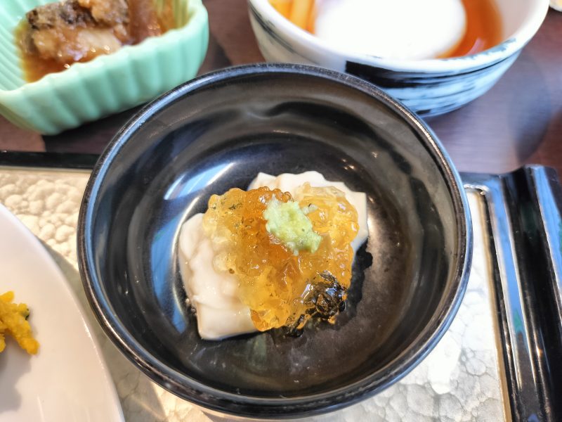 ↑↑湯葉刺しにはお出汁のジュレと山葵が😍